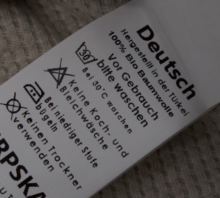 - Knöpfe/Fäden/Accessoires sind ebenfalls 100% Biologisch